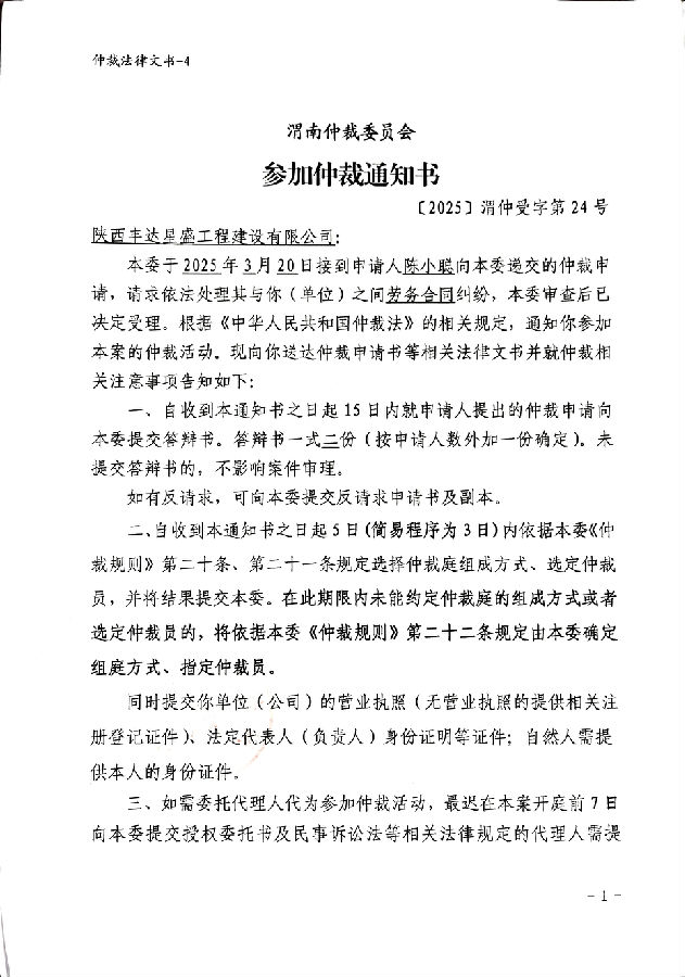 陳小聰與陜西豐達星盛工程建設有限公司勞務合同糾紛案公告